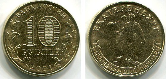 → Монета 10 рублей 2021 года. Екатеринбург. Города трудовой доблести
