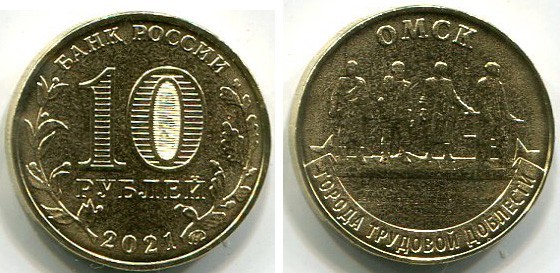→ Монета 10 рублей 2021 года. Омск. Города трудовой доблести