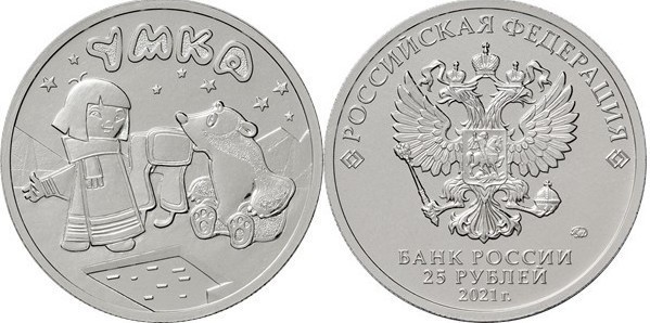 → Монета ("простая") 25 рублей 2021 года. Российская (советская) мультипликация. «Умка»